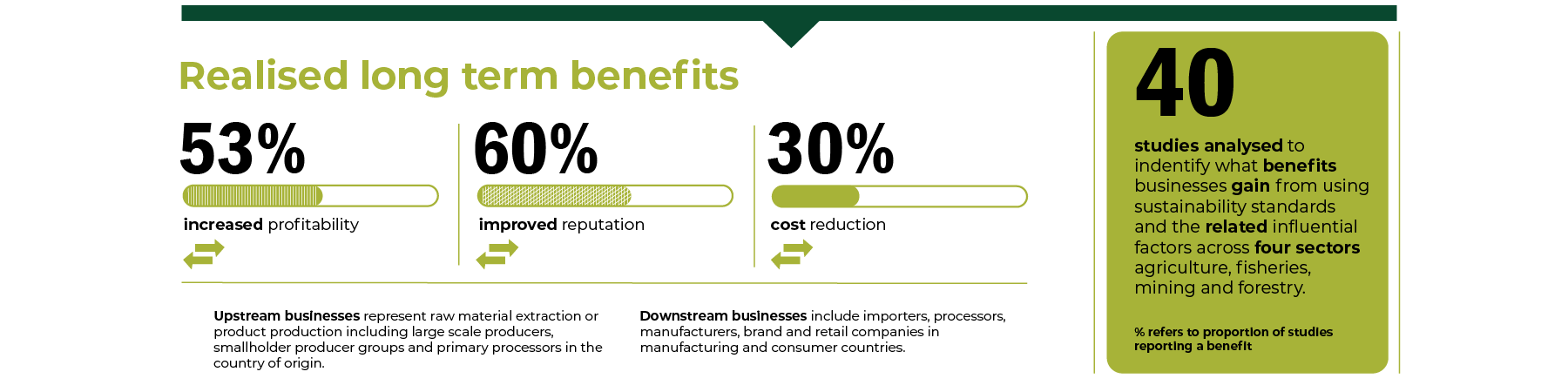 Independent research finds that sustainability standards improve market access, profitability and production for certified businesses and enhance reputation while reducing risk for manufacturers and retailers.